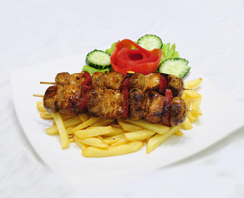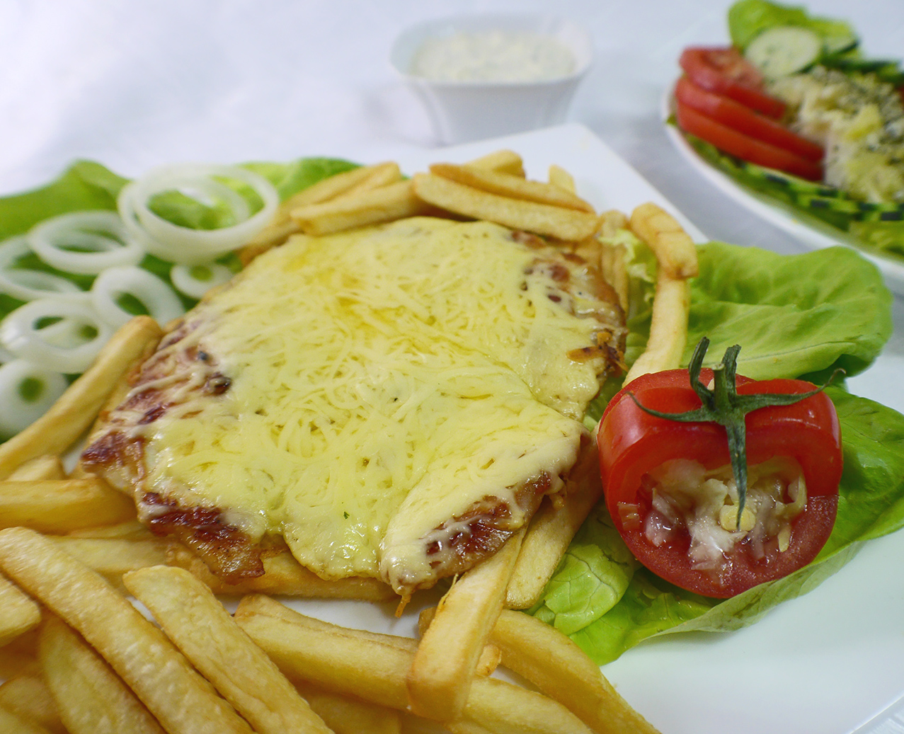 120 gr. pilećeg mesa, 200 gr., pomfrit,